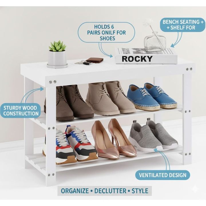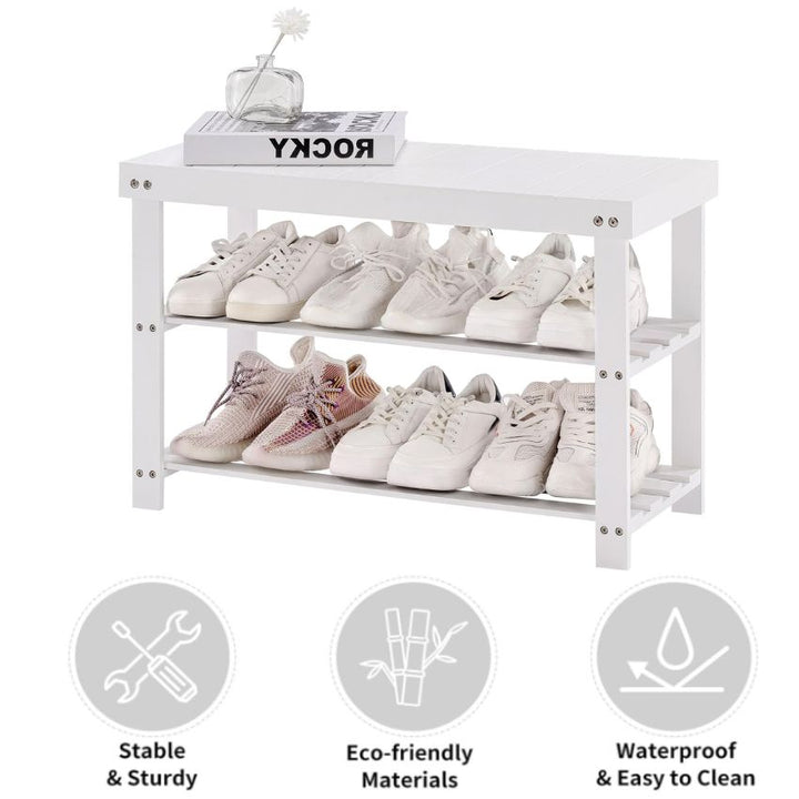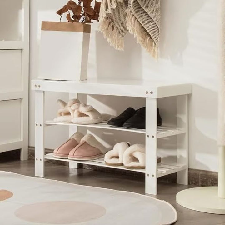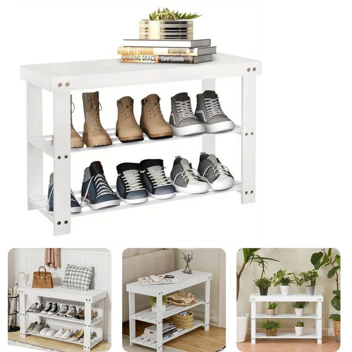 Keep your entryway neat and organized with this stylish 3-tier bamboo shoe rack. Made from durable, eco-friendly bamboo, it offers plenty of space for shoes while doubling as a sturdy bench. Perfect for entryways, hallways, or closets, this rack combines natural beauty with practical storage. Easy to assemble and built to last.